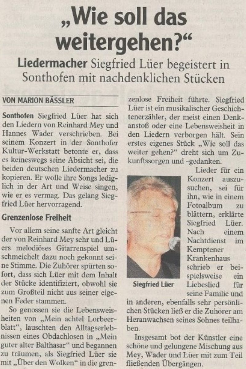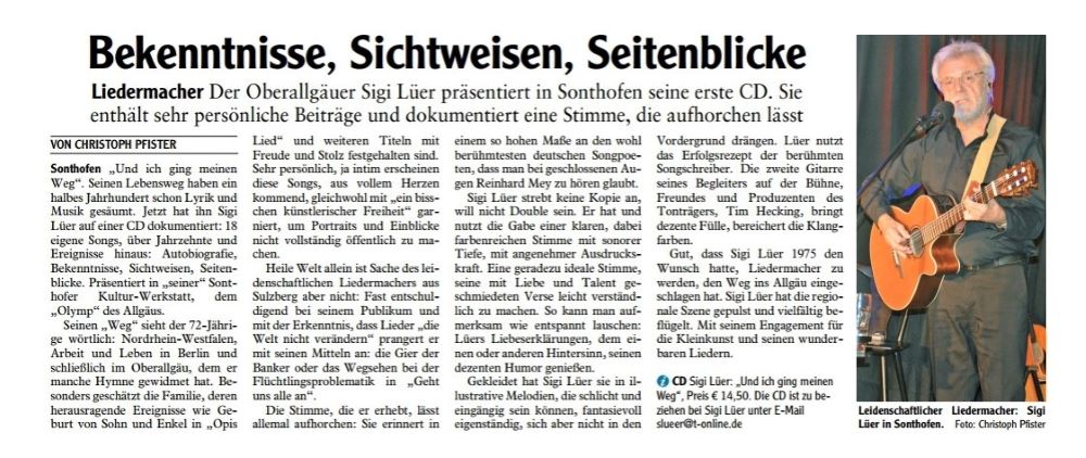 Sigi Lüer singt Lieder von Reinhard Mey 2017 Allgäuer Anzeigeblatt