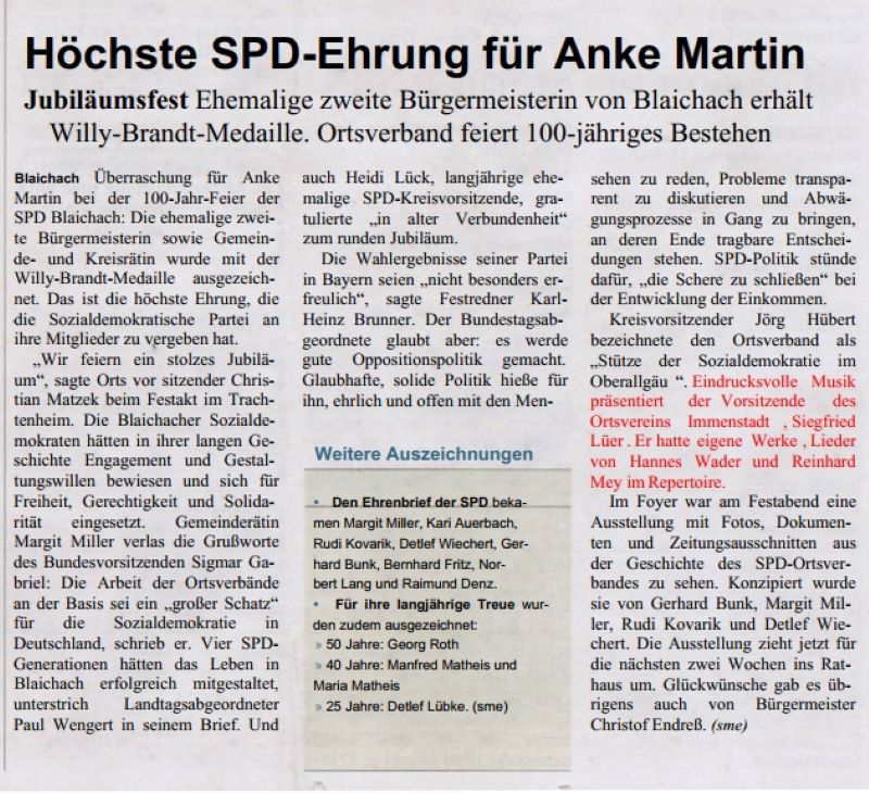 100-Jahr-Feier SPD Blaichach 2014 Allgäuer Anzeigeblatt