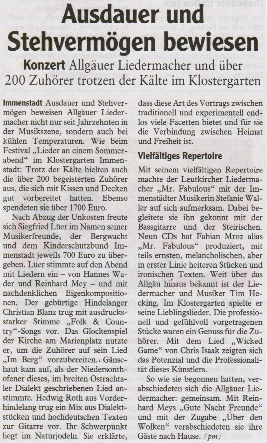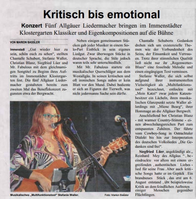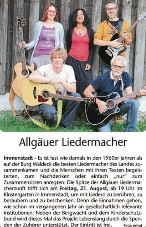 Allgäuer Liedermacher im Klostergarten 2014 Allgäuer Anzeigeblatt