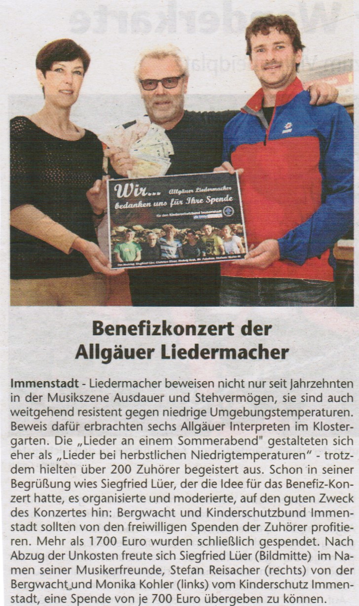 Benefizkonzert der Allgäuer Liedermacher 2014 Kreisbote