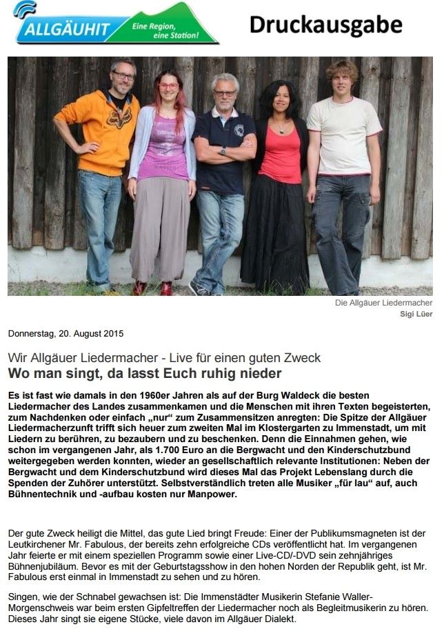 Wir Allgäuer Liedermacher - Live für einen guten Zweck 2015 AllgäuHIT