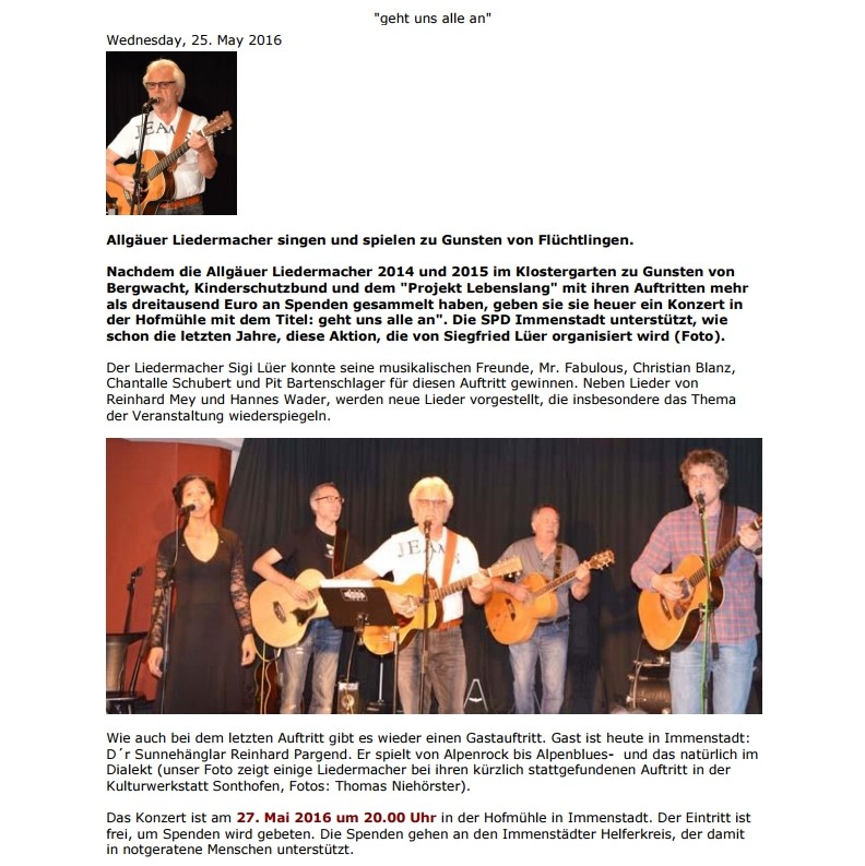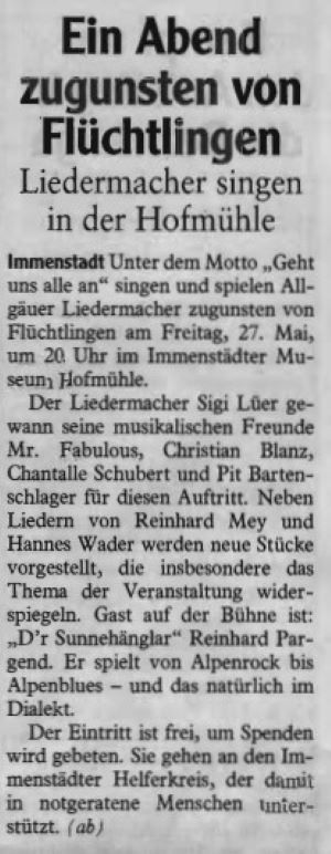 Ein Abend zugunsten von Flüchtlingen 2016 Allgäuer Anzeigeblatt