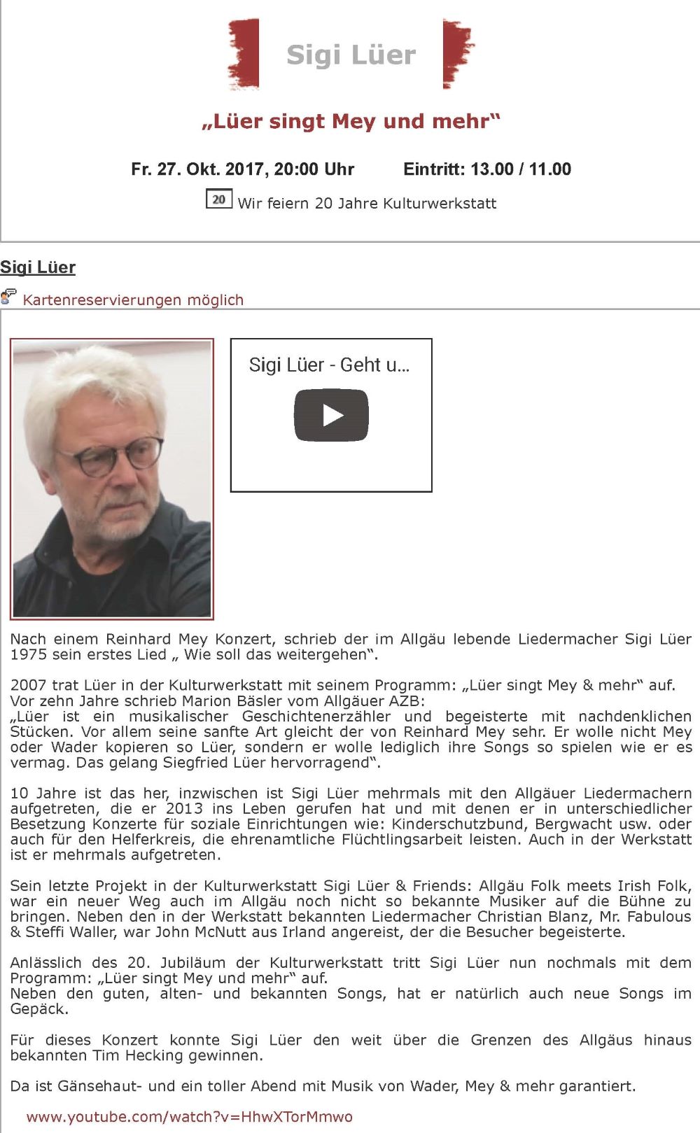 Lüer singt Mey und mehr 2017 Kulturwerkstatt Sonthofen