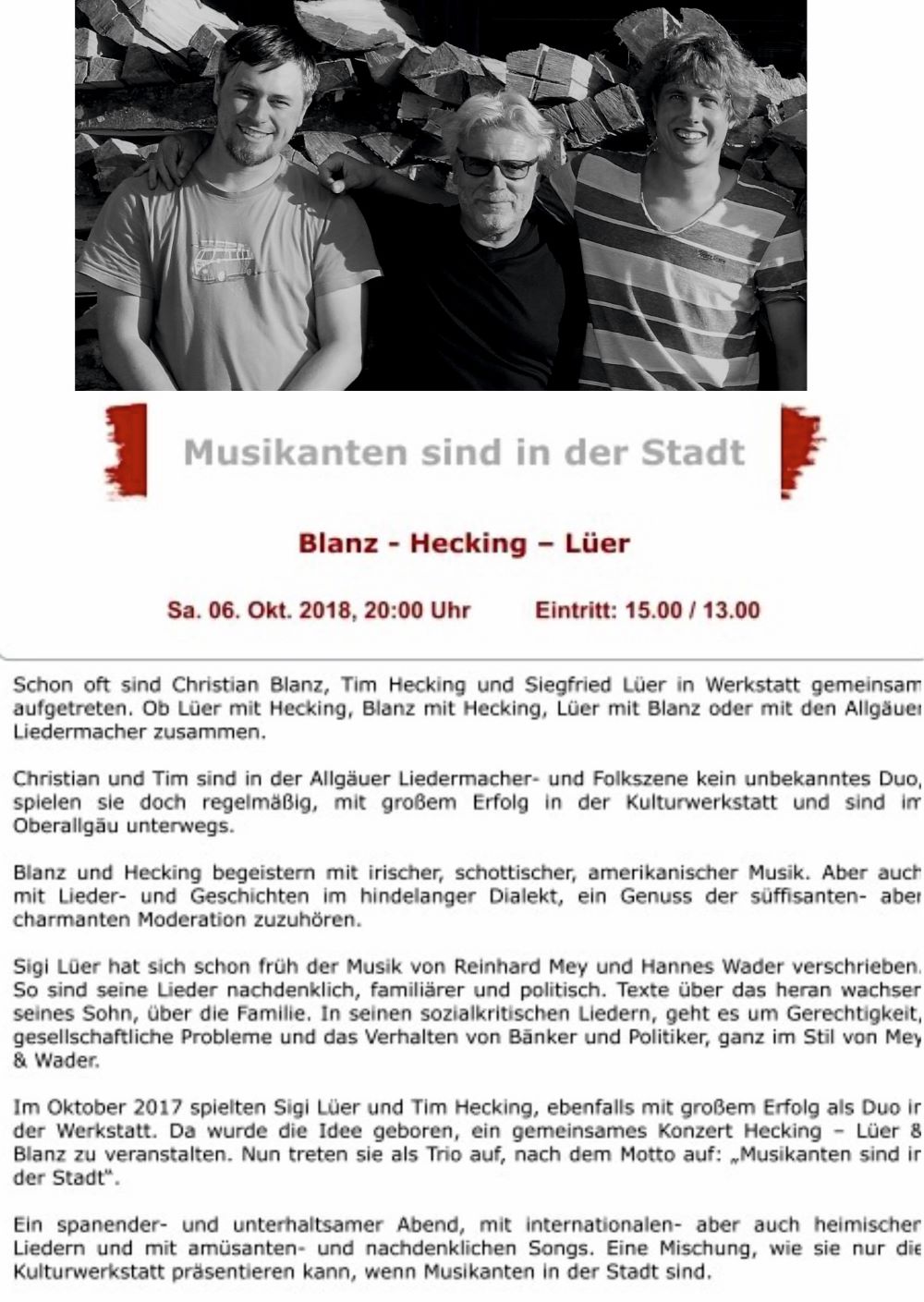 Allgäuer Liedermacher poetisch - engagiert - multikulturell 2015 Kulturwerkstatt Sonthofen