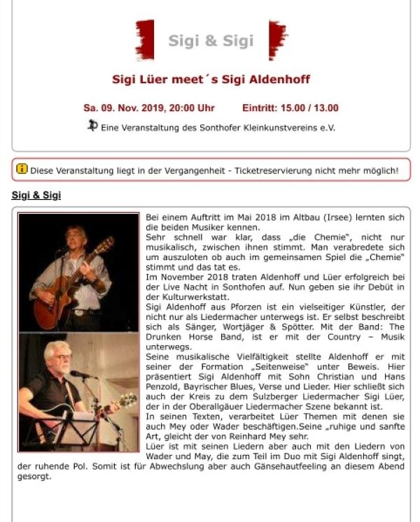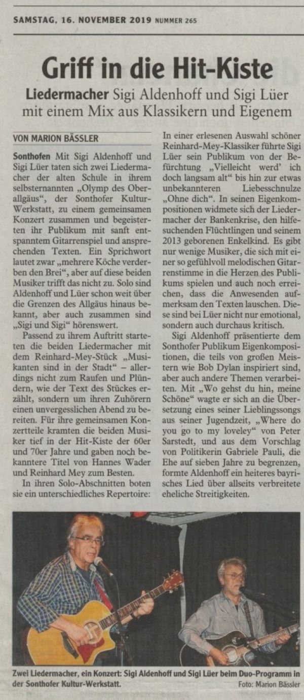 Sigi Lüer meet's Sigi Aldenhoff 2019 Kulturwerkstatt Sonthofen