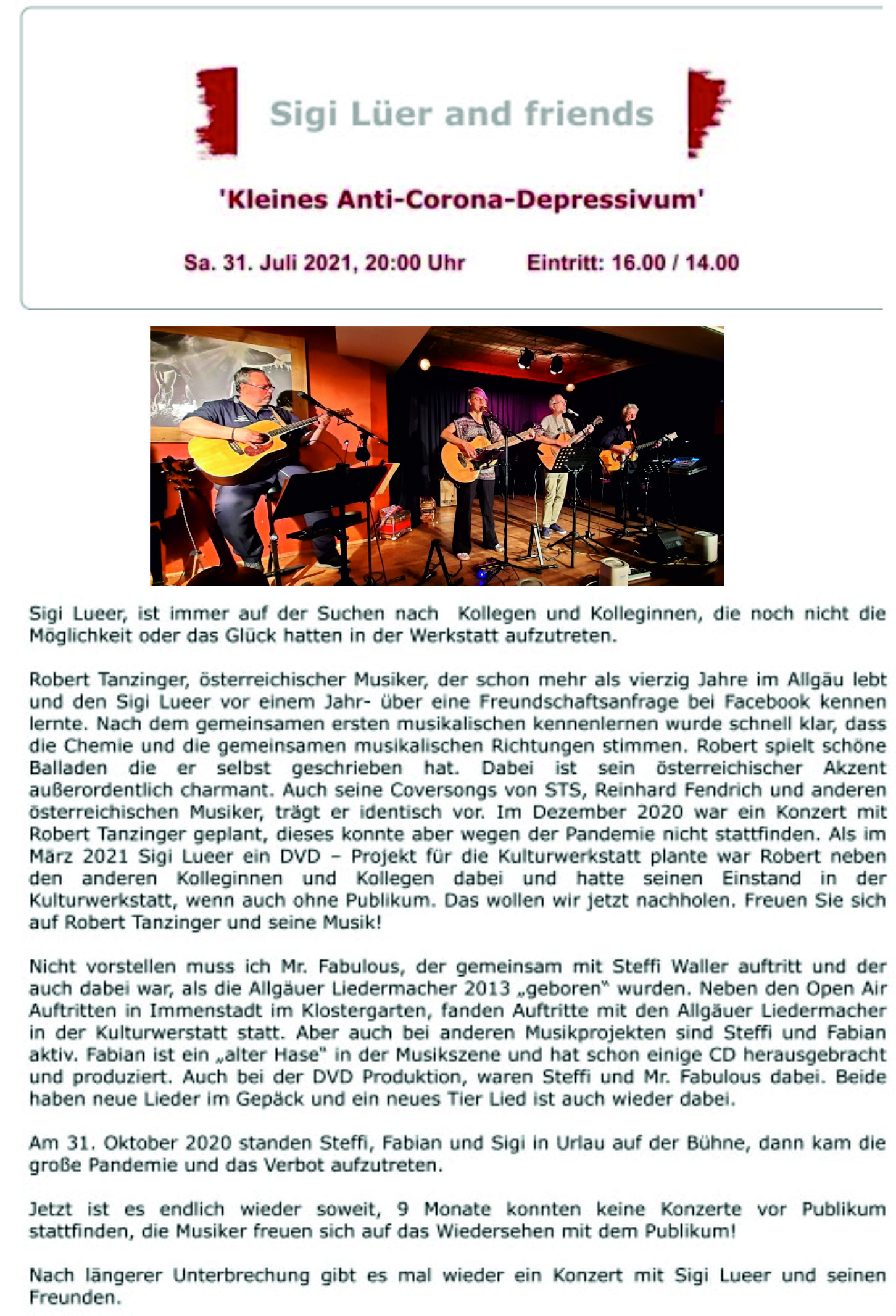 Allgäuer Liedermacher laden ein 2021 Kulturwerkstatt Sonthofen