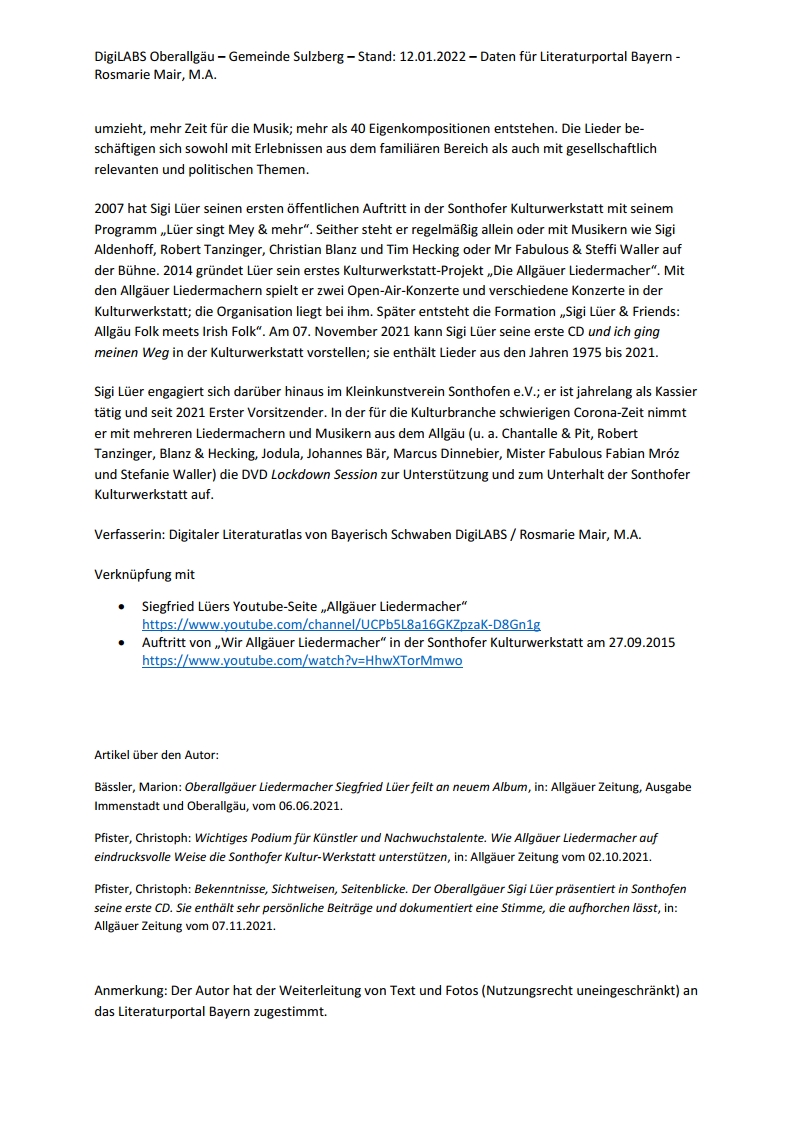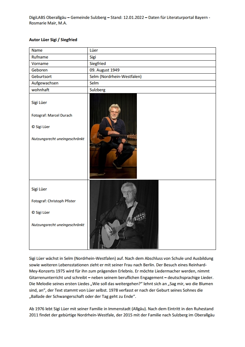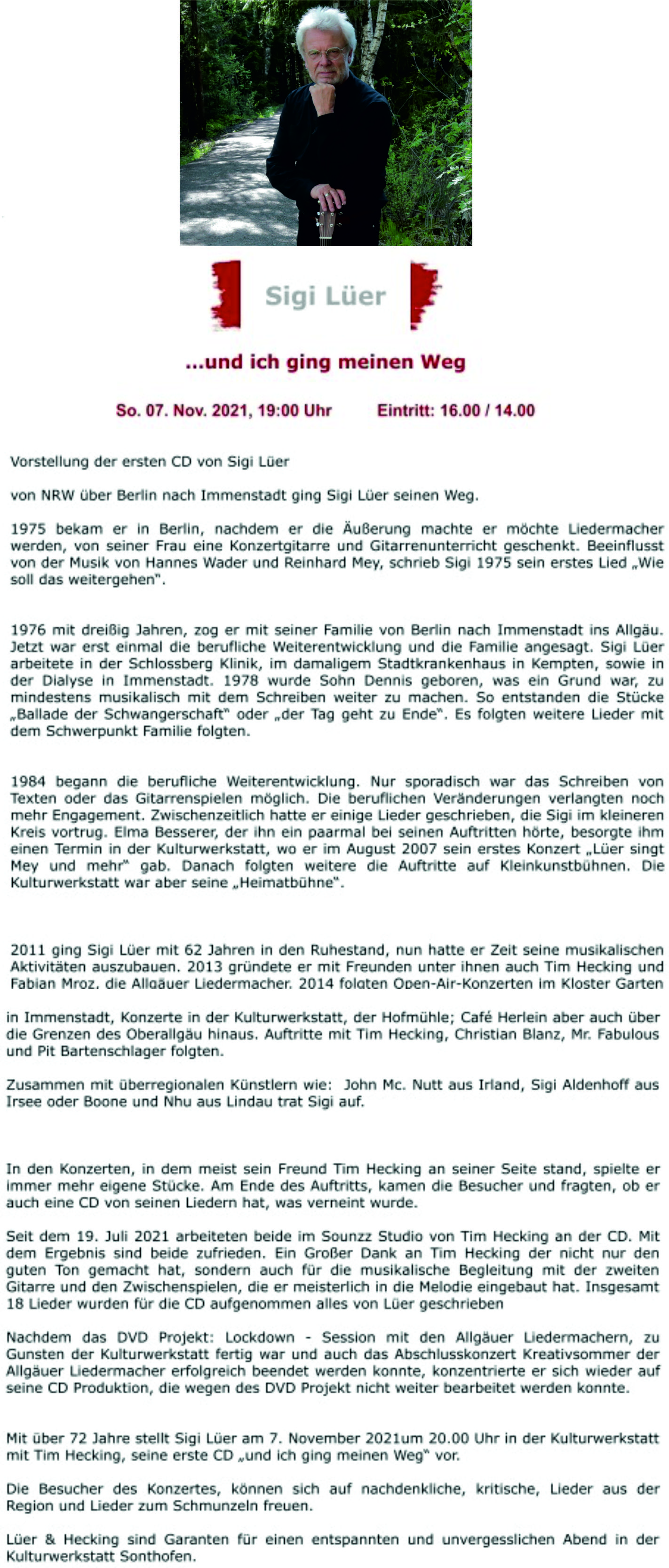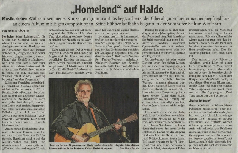 Liedermacher Sigi Lüer präsentiert seine erste CD 2021 Allgäuer Anzeigeblatt